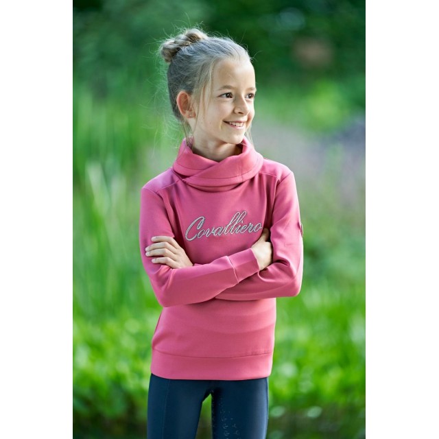Bluza wykonana z funkcjonalnej, elastycznej oraz bardzo przyjemnej w dotyku mieszanki materiałów, dzięki której łatwiej odprowadza wilgoć. Posiada atrakcyjny kołnierz szalowy i wyszywany napis z logo Covalliero.