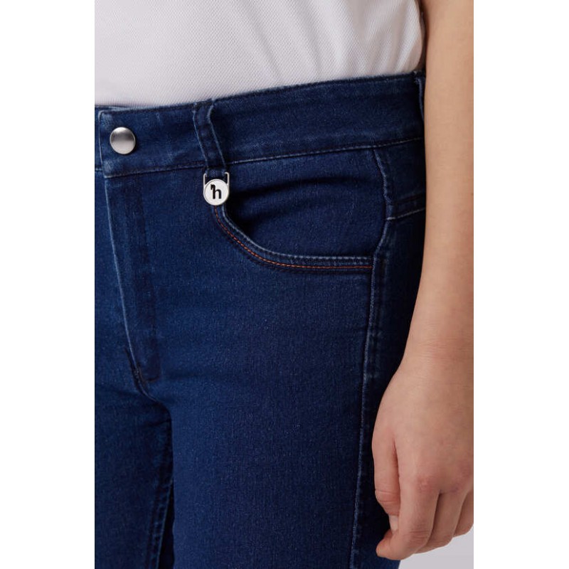 Bryczesy Horze Allison są uszyte z miękkiego denimu oraz zostały wykończone typowymi dla jeansów kontrastowymi przeszyciami na kieszeniach z przodu i z tyłu. Pełny lej silikonowy pomoże pewnie utrzymać się w siodle.