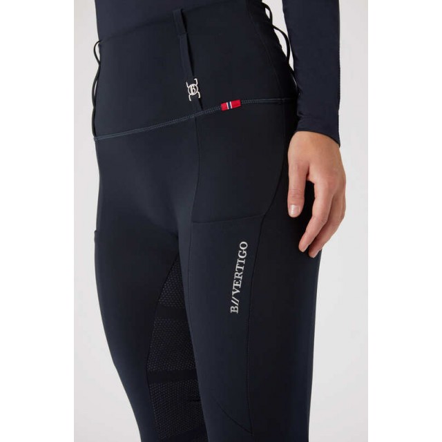Zimowe legginsy termiczne Luisa firmy B Vertigo są uszyte z przewiewnego materiału z czesaną podszewką, która nawet w największe mrozy zapewni przyjemne ciepło. Wysoki stan zapewnia idealne dopasowanie i ładnie podkreśla talię, jednocześnie gwarantując dodatkowe podparcie. Pełny lej silikonowy zapewnia dobrą przyczepność do siodła. Dwie kieszenie na nogawkach przydadzą się, np.: na telefon. Szlufki z ciekawym akcentem.
