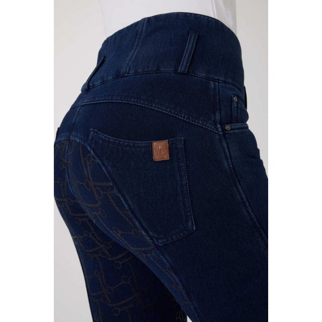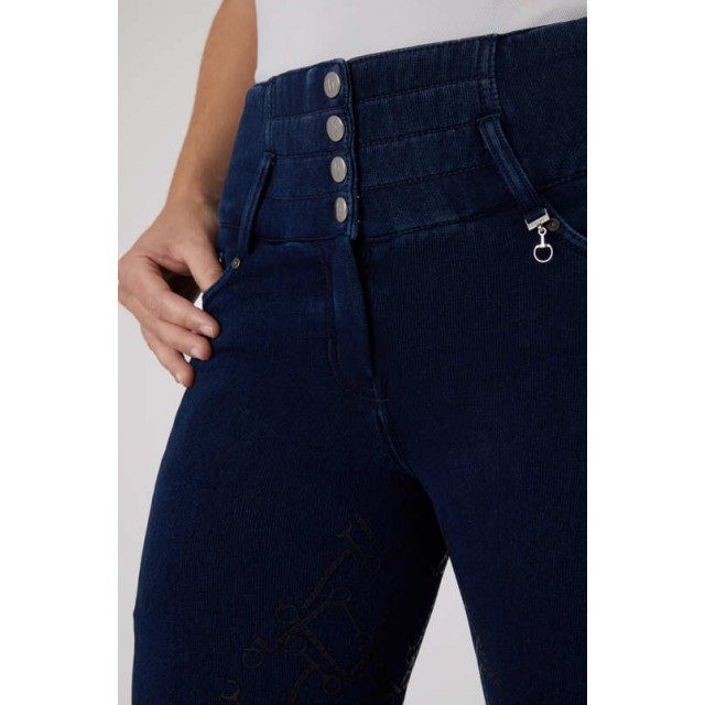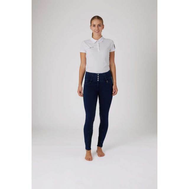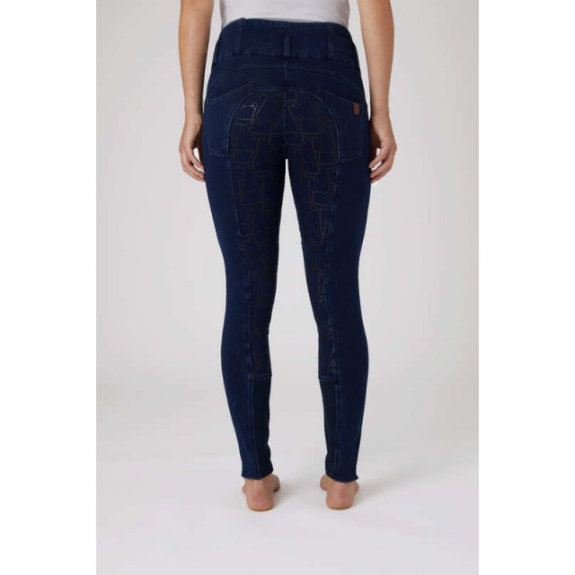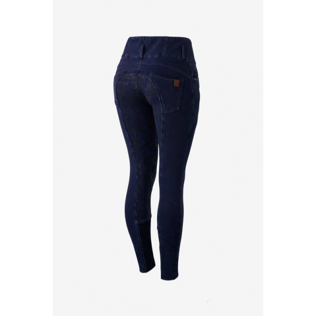 Bryczesy "Kacy" z wysokim stanem firmy Horze są uszyte z miękkiego denimu, od środka zostały podszyte polarową podszewką, która zapewni przyjemne ciepło w zimowe dni. Pełny lej silikonowy pomoże pewnie utrzymać się w siodle.