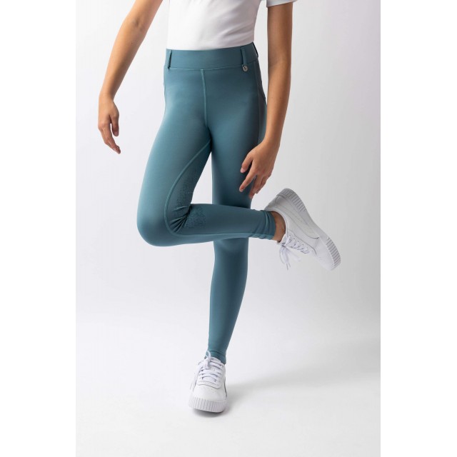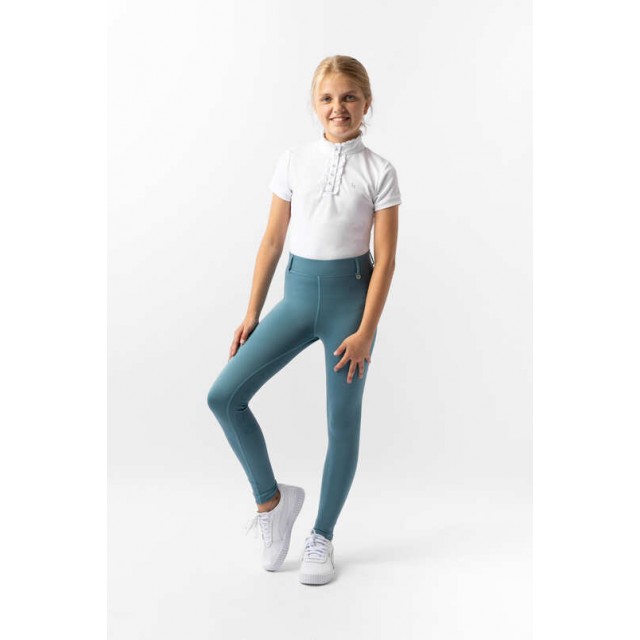 Te dziecięce legginsy z pełnym lejem łączą komfort i funkcjonalność. Wykonane z trwałego materiału o elastycznym kroju. Szlufki na pasek umożliwiają dodatkowe wsparcie. Kieszenie na telefon zwiększają praktyczność. Silikonowe wzmocnienie zapewnia stabilność w siodle. Oddychające i elastyczne – idealne dla młodych jeźdźców.