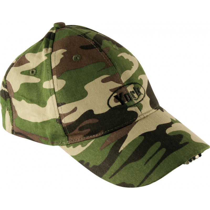 Czapka typu baseball. W modnym wzorze moro. Posiada diodowe lampki z przodu na daszku.