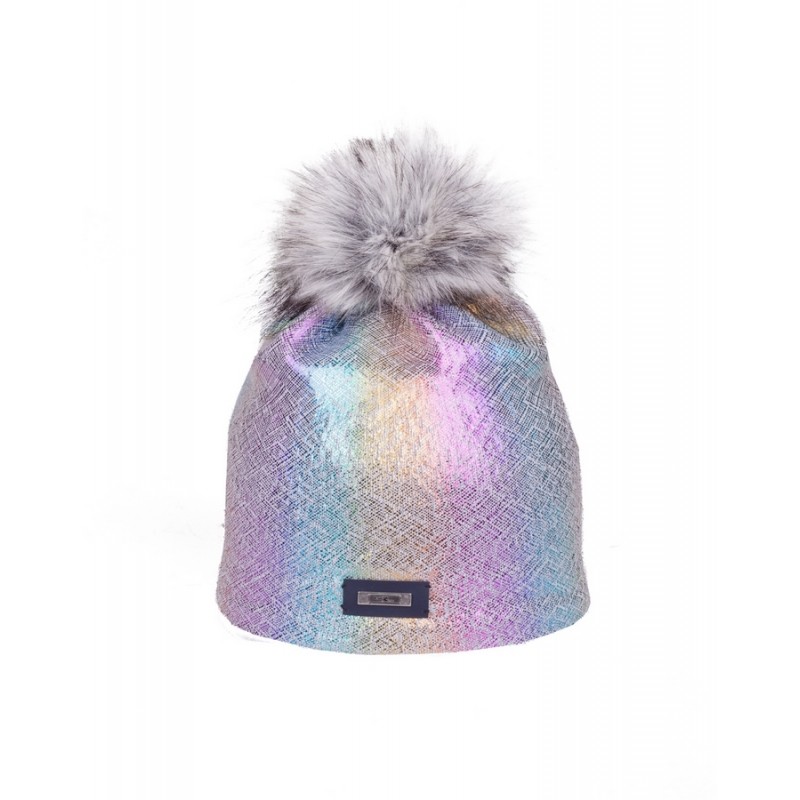 Ciepła czapka z pomponem, od spodu podszyta polarem, materiał wierzchni neonowy połyskujący