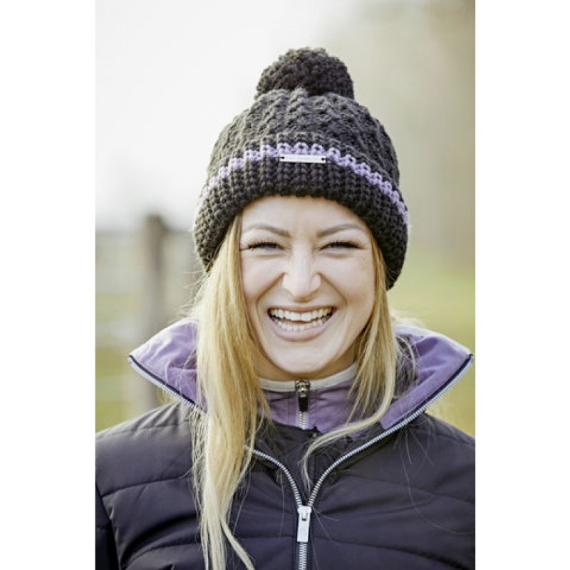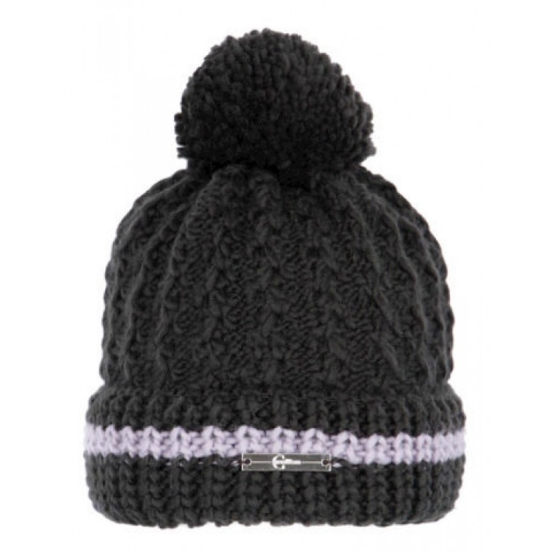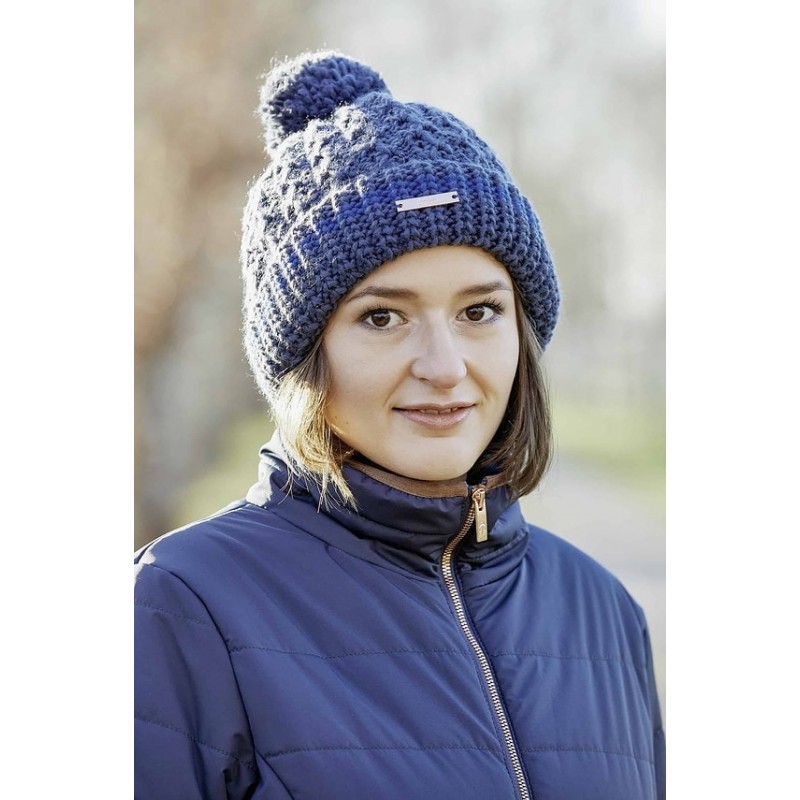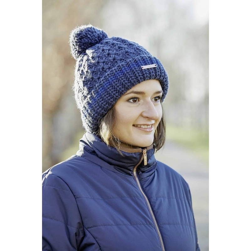 Ciepła zimowa czapka z pomponem, od wewnątrz podszyta polarkiem, ozdobiona delikatną lśniącą blaszką z napisem Covalliero
