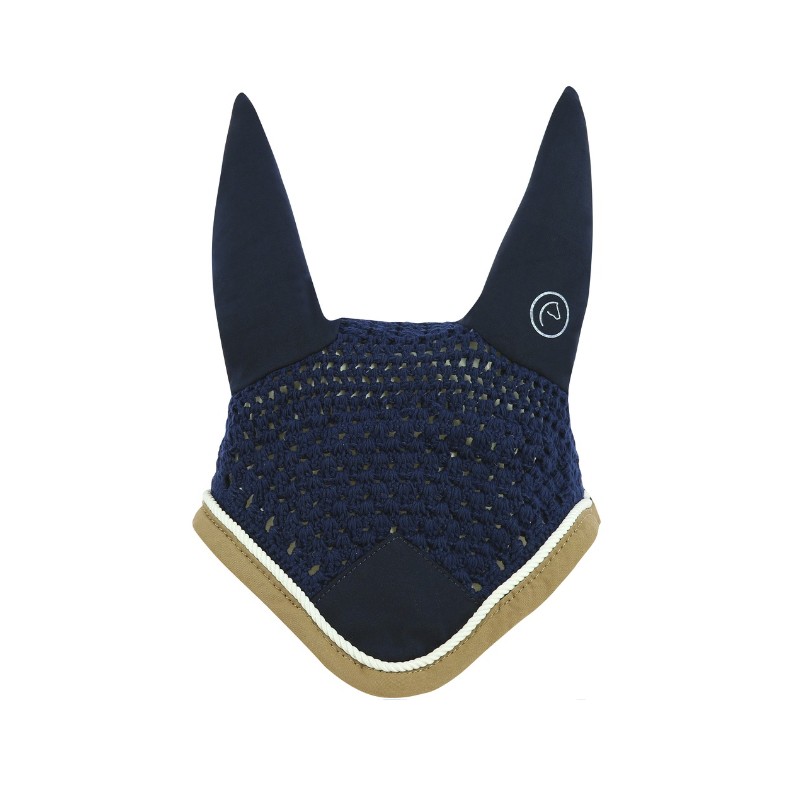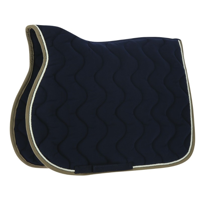 Bawełniany czaprak pikowany w fale, miękko podszyty, zdobiony kontrastową beżową lamówką oraz białym sznurem. W zestawie z nausznikami