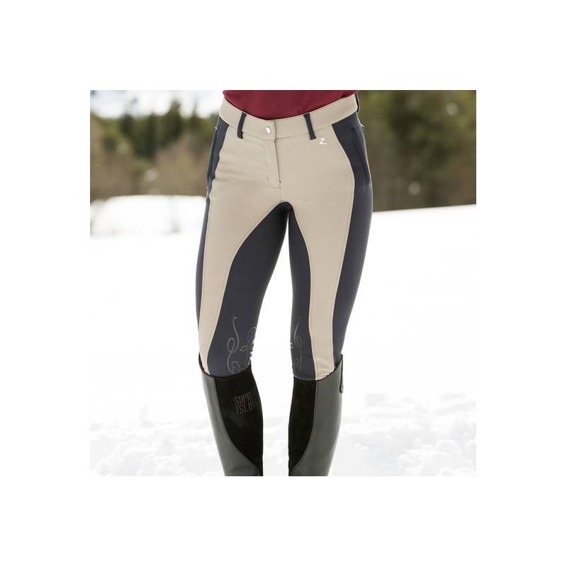 Bardzo dobrze leżące bryczesy- fason oraz szycie optycznie wydłużające sylwetkę. Bryczesy wykonane z funkcjonalnej tkaniny typu B-Strech, o wysokich właściwościach odporności na wodę i bród. Z przodu 2 kieszenie zapinane na zamek, z tyłu, dwie kieszenie. Nogawki zakończone elastycznymi wstawkami. Pełny lej z syntetycznej skórki oraz dodatkowo na kolanachsylikonowy nadruk