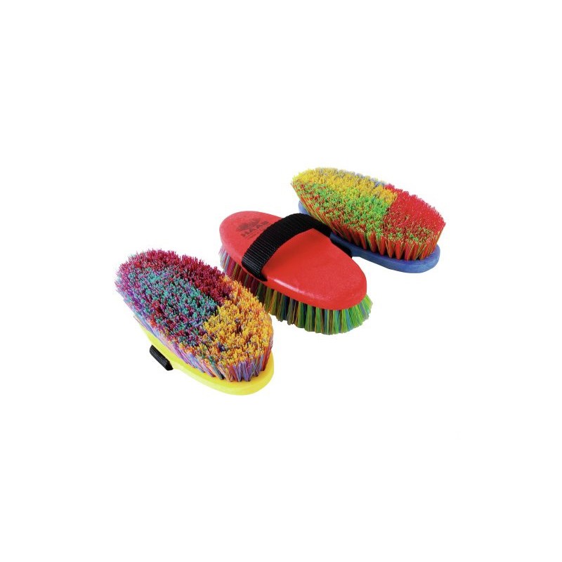 Wytrzymała szczotka z kolorowej imitacji korzenia ryżowego. Z nylonową szlufką. Rozmiar 150 mm x 85 mm. Wyprodukowana w Niemczech.