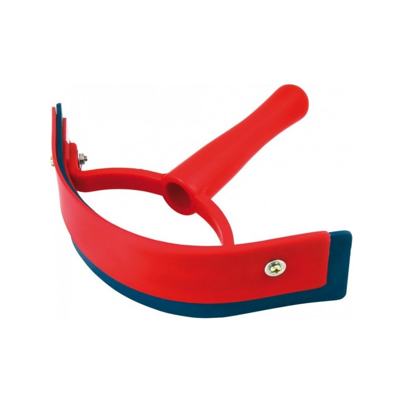 Ściągaczka do wody, wykonana z plastiku, zakończona gumowym paskiem, służy przede wszystkim do ściągania nadmiaru wody po kąpieli konia, w celu szybszego wyschnięcia