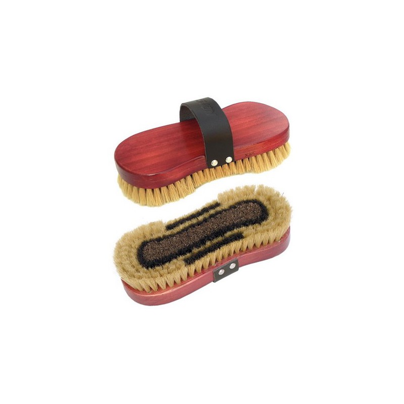 Bardzo dobrej jakości drewniana szczotka wyrzynana z naturalnym włosiem. Pasek parciany. Wygodnie się trzyma.