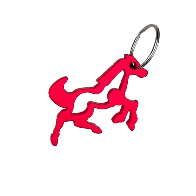 Breloczek w kształcie konika, został bardzo ładnie wykonany z aluminium. Wyposażony w otwieracz do butelek.