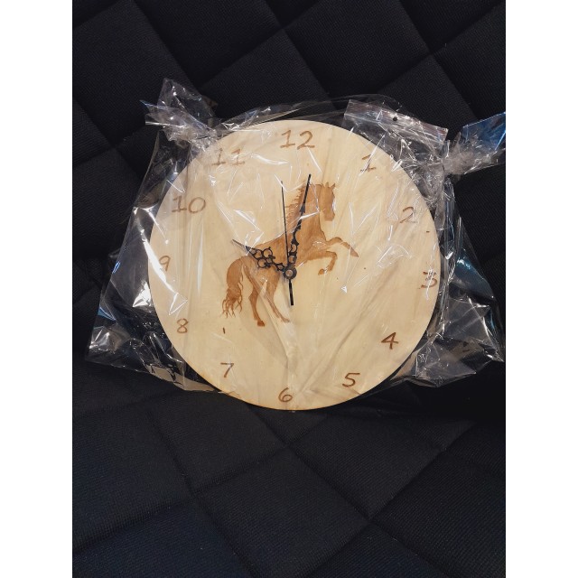 Unikalny zegar naścienny z motywem konia - ręcznie wykonany z drewna! Oferujemy wyjątkowy zegar naścienny, idealny do Twojego domu! To nie tylko funkcjonalny element wyposażenia, ale również wyjątkowa ozdoba, która nada wnętrzu niepowtarzalny charakter.