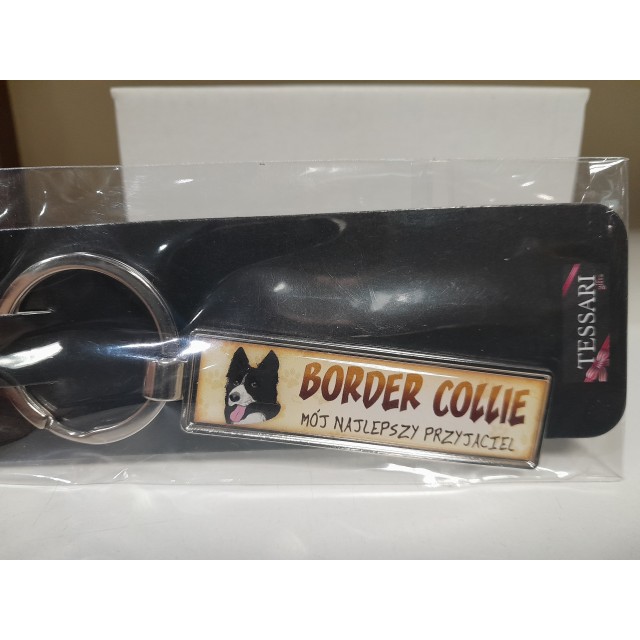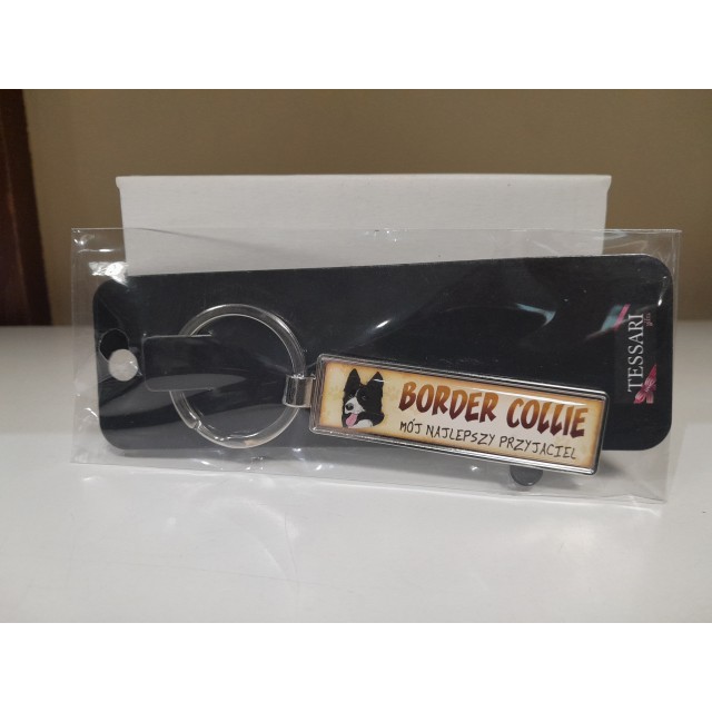 Prostokątny breloczek do kluczy z wesołym motywem. Idealny dla miłośników rasy.