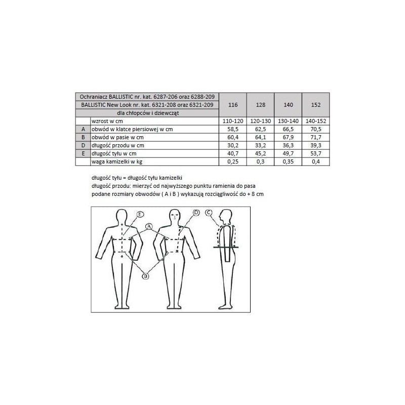 Rozmiary: 116 cm, 128cm, 140cm, 152cm (tabela załączona w galerii zdjęć)