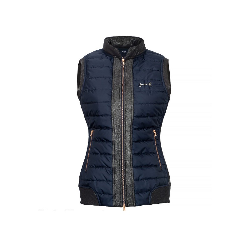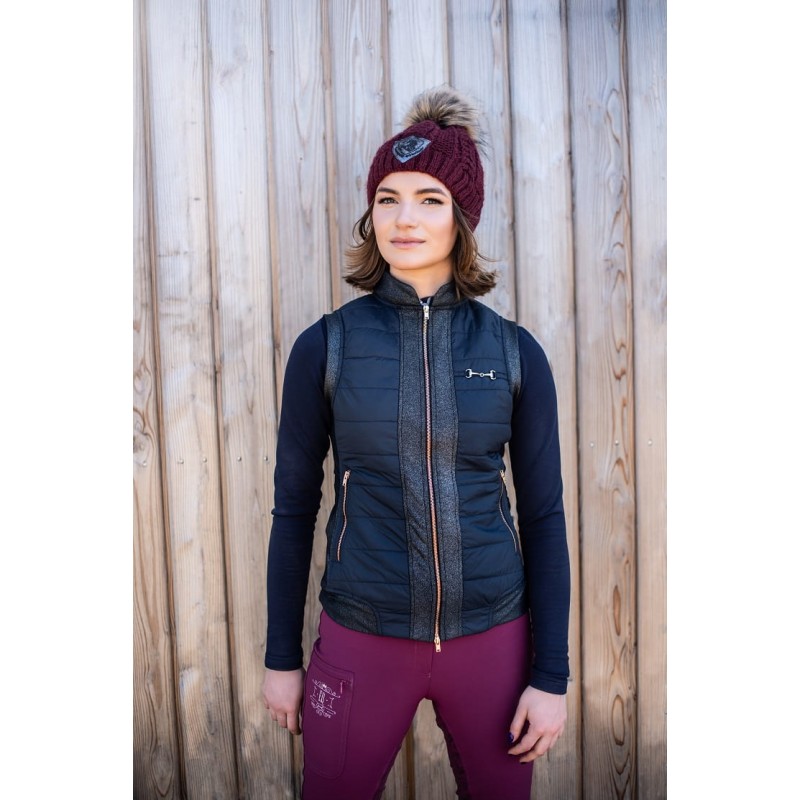 Kamizelka Emily od Equestrian Queen w nowej odsłonie. Lekka i łatwa w czyszczeniu. Posiada wstawki z czarnego, błyszczącego materiału oraz zamki rosegold. Z przodu delikatne, srebrne wędzidło, a na plecach duży haft. Poczuj się wyjątkowo w stajni.