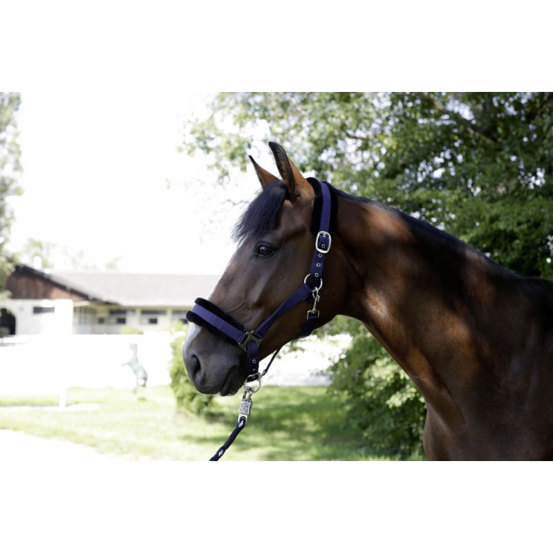Kantar ze zdejmowanym sztucznym futerkiem na nachrapniku i potylicy. W zestawie futerko wymienne w kolorze czarnym i białym.