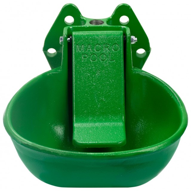 Duża misa z żeliwa pokryta wysokiej jakości lakierem proszkowym. Przyłącze wody od góry i od dołu (1/2). Całość do zamontowania na rurze lub ścianie. Język plastikowy.