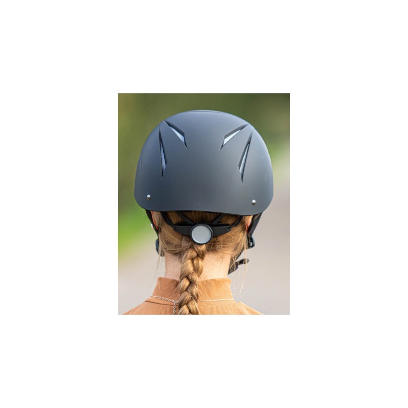 Lekki, nowoczesny kask jeździecki. Skorupa została wykonana z materiału o matowej fakturze. Łatwo dopasowuje się do głowy dzięki czteropunktowemu systemowi regulacji. System wentylacji pozwala na większy komfort termiczny w trakcie użytkowania. Łatwe zapięcie dzięki klamerce. Osłonka zapobiegająca przyszczypywaniu i obcieraniu.