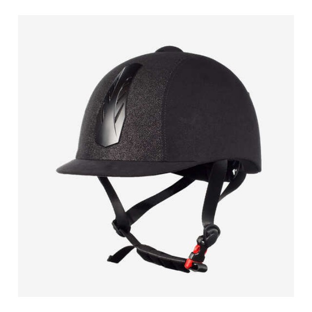 Kask firmy Horze jest niezwykle elegancki dzięki kryształkom oraz chromowanej wstawce z regulacją rozmiaru za pomocą pokrętła z tyłu. Pokryty prostym w czyszczeniu świetnej jakości materiałem zamszowym typu, charakteryzujący się miękkością, odpornością na ścieranie, wysoką żywotnością oraz łatwością utrzymania w czystości.