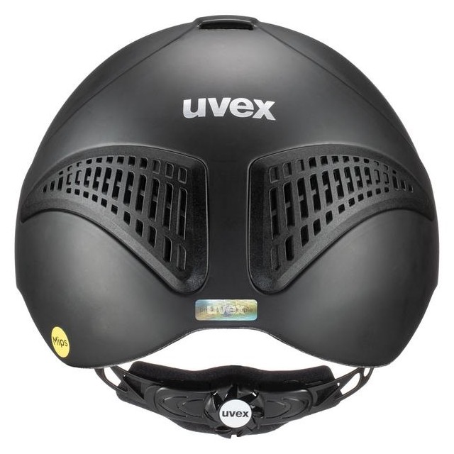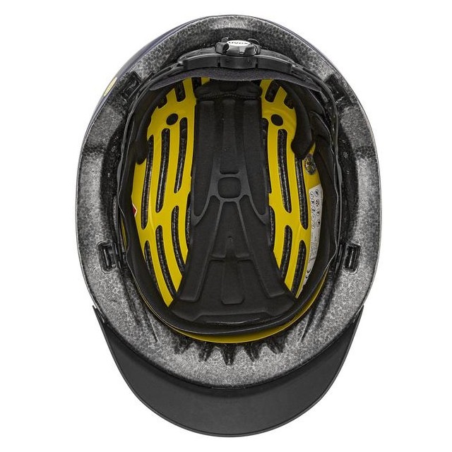 system MONOMATIC, który umożliwia łatwe zapinanie i rozpinanie kasku jedną ręką w każdych warunkach oraz miękki daszek zabezpieczający zarówno jeźdźca jak i konia przed potencjalnymi zranieniami.