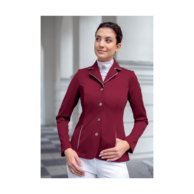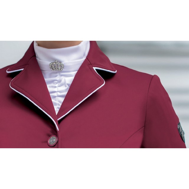 Damski krótki frak konkursowy "Michelle" firmy Fair Play o minimalistycznym lekko sportowym fasonie. Propozycja dla zwolenniczek eleganckiej prostoty. Wykonany został z softshellu Comfidry, który jest wodoodporny, oddychający i elastyczny. Bardzo wygodny, nie krępuje ruchów w czasie jazdy. Popsiada dopasowany i kobiecy krój oraz dwie kieszenie zapinane na kryte zamki.