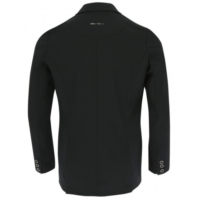 Frak Equitheme z poliamidu i elastanu, lekki i elastyczny. Idealnie dopasowuje się do każdego ruchu podczas jazdy. Główny materiał jest bardzo oddychający i szybko schnie. Wyposażony w wygodne kieszenie z klapkami. Zapięcie na 3 guziki.