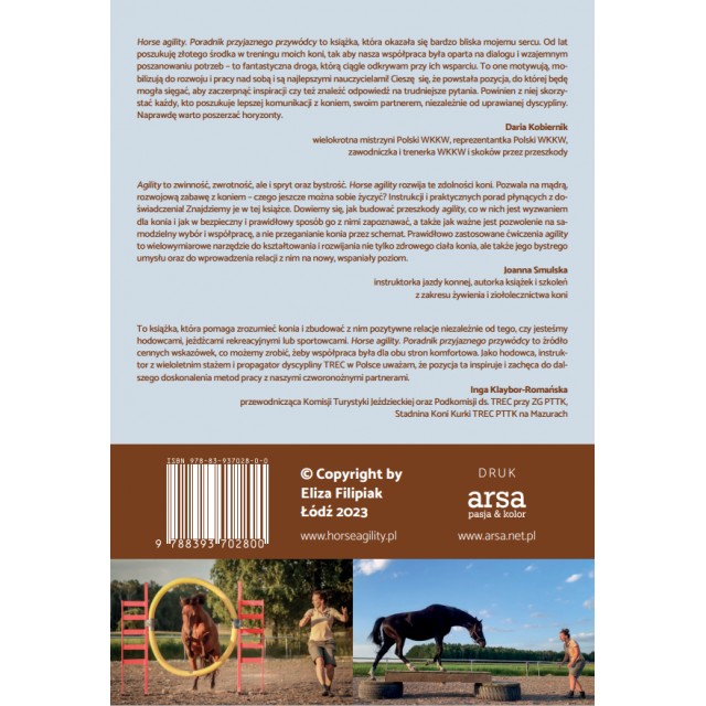 Na swojej koniarskiej drodze miałam przyjemność spotkać wielu doskonałych jeźdźców i trenerów koni (i ludzi), których nie sposób tutaj wymienić, a wiedzę pozyskaną od nich udało mi się zsyntetyzować w osobiste podejście do koni. W 2010 roku zostałam instruktorem rekreacji ruchowej ze specjalnością jazda konna oraz ze specjalnością hipoterapia, później zawodniczką ujeżdżenia, przodownikiem nizinnej turystyki jeździeckiej PTTK, pierwszym w Polsce trenerem horse agility akredytowanym przez The International Horse Agility Club, a teraz także autorem książki.