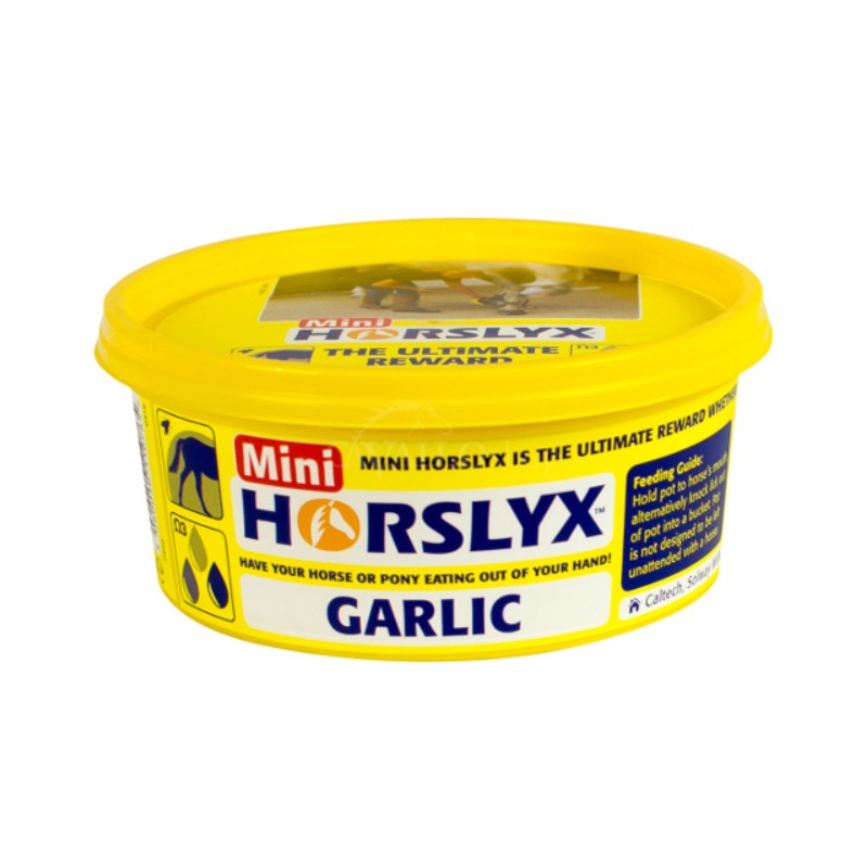 Lizawka "Garlic" Horslyx zawiera czysty olej czosnkowy, który pomaga zwalczać problem gryzących owadów. Niezależne badania stwierdzają, że pomaga łagodzić podrażnienia wywołane wypryskiem letnim.