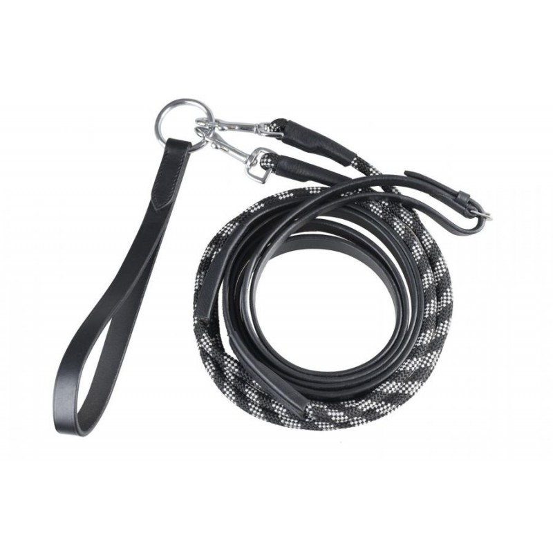 Czarna Wodza wykonana ze skóry połączonej z nylonową linką dla zapewnienia płynnego przesuwania się. Linka mocowana za pomocą karabińczyków zapewniająca możliwość szybkiego jej odpięcia. W komplecie szlufka na popręg.