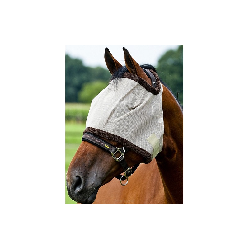 Maska z siateczki, miękko podszyta na brzegach, by zapewnić większy komfort Twojemu koniowi. Łatwa w użyciu dzięki zapięciom na rzep.