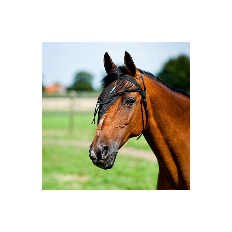 Frędzelki przeciw owadom, które mogą być używane bez kantara. Regulacja i mocowanie przy pomocy rzepu. Materiał: miękki poliester.