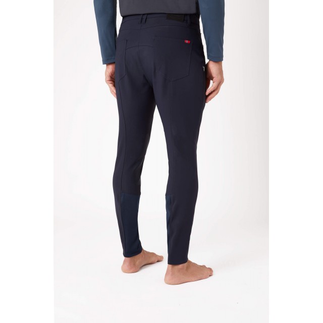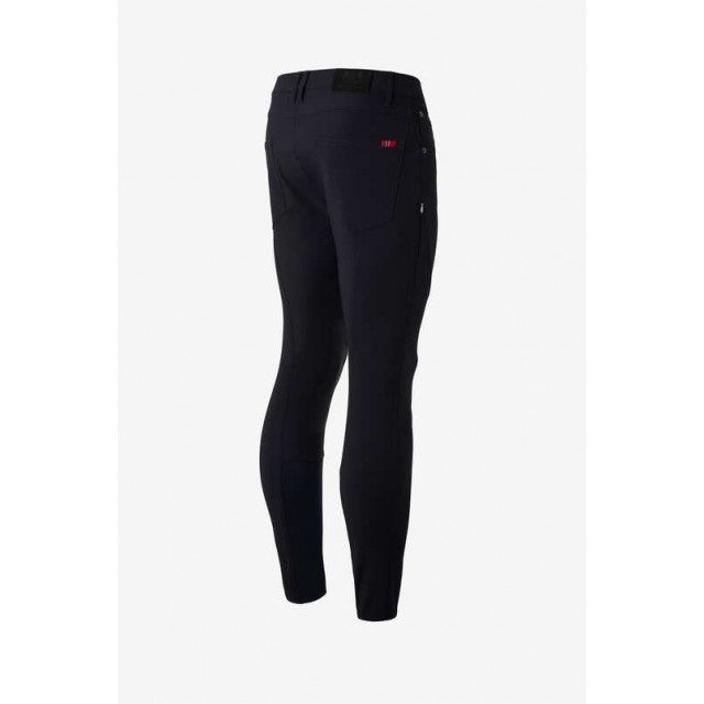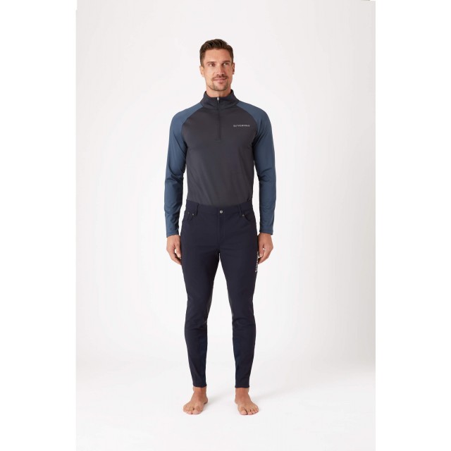 Funkcjonalne bryczesy o tradycyjnym kroju, wyposażone w dużą, zamykaną kieszeń. Dostępne w kolorze granatowym.