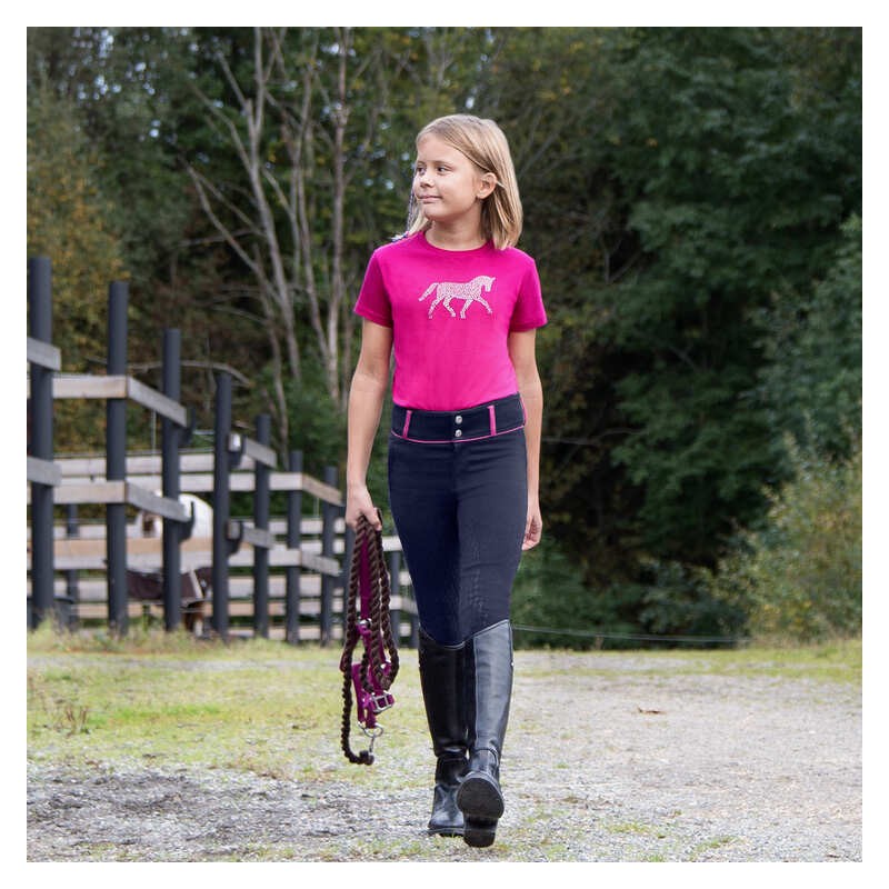 Klasyczne bryczesy z wysokim stanem oraz silikonowym nadrukiem na pełnym leju. Bryczesy ozdobione są nadrukiem wędzidełek na leju, dzięki czemu wyglądają oryginalnie.
