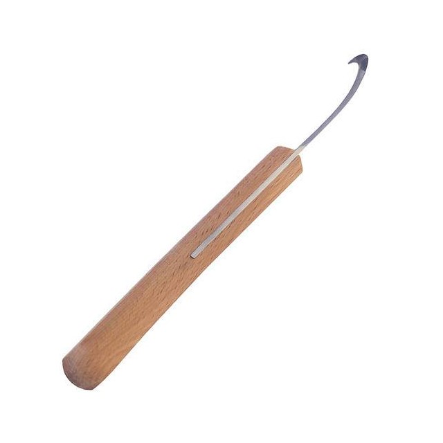 Profesjonalny dwustronny nóż, wykonany z bardzo dobrej jakości szwedzkiej stali firmy Mustad. Wyprofilowane ostrze zwiększa siłę i dokładność cięcia, zaś rączka z twardego drewna nie powoduje zmęczenia ręki. Czarna stal.