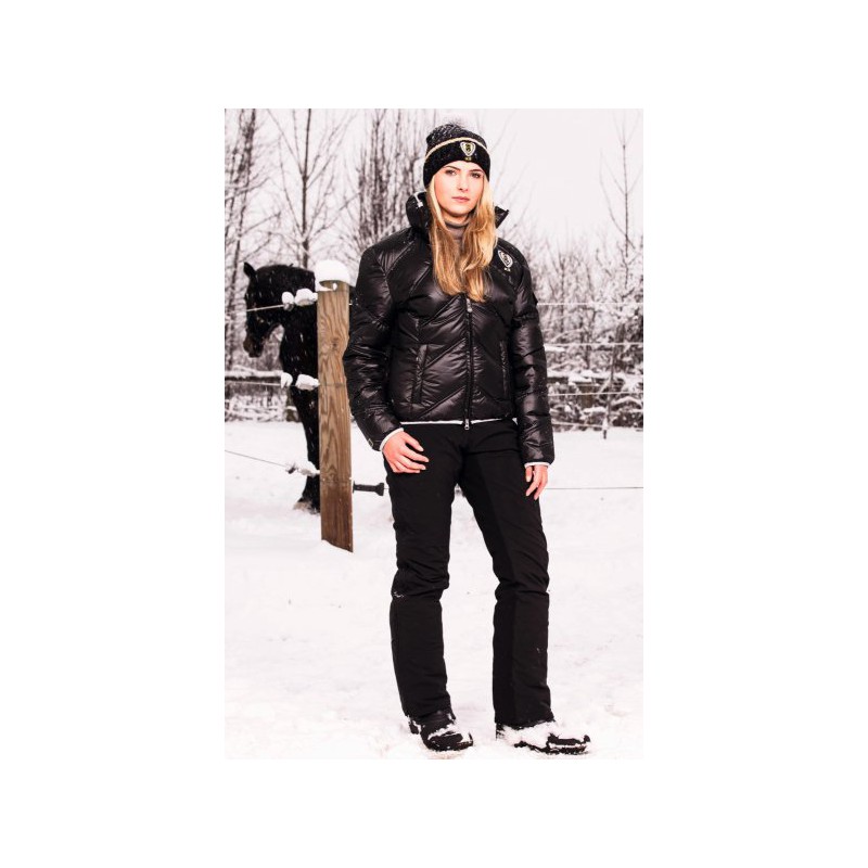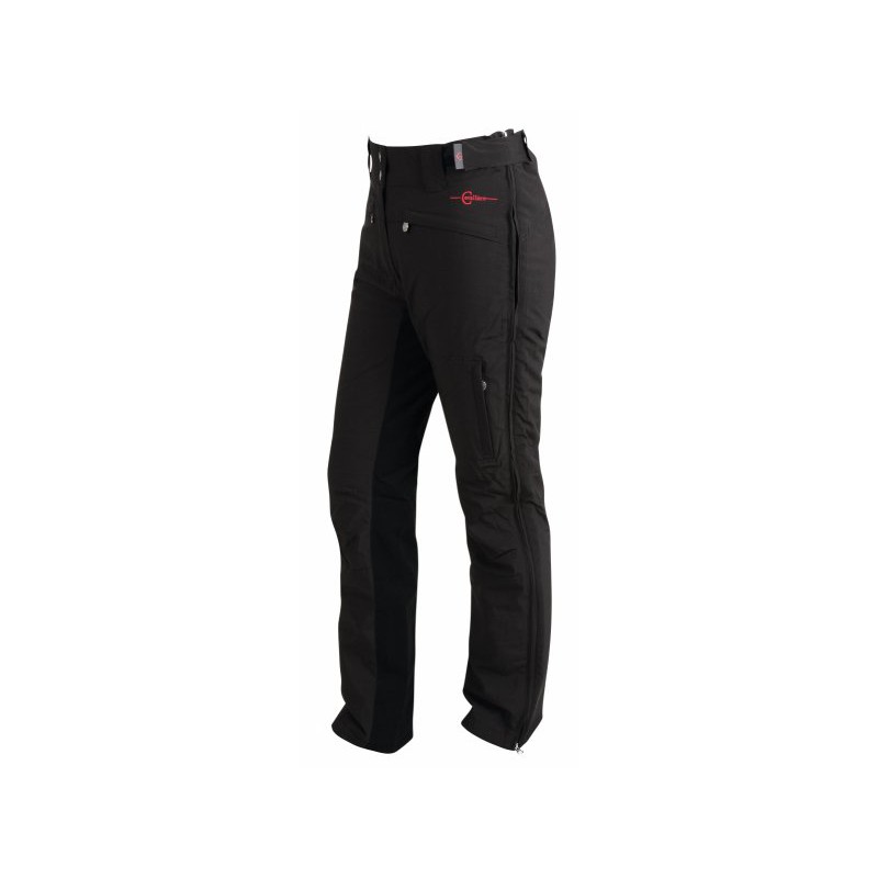Elastyczne w dwóch kierunkach dzięki materiałowi Supersoft-Softshell. Łatwe do ubrania dzięki całkowicie otwierającym się zamkom błyskawicznym po obu zewnętrznych stronach nóg. Z antypoślizgowym pełnym lejem zapewniającym dobry kontakt z siodłem. Regulacja szerokości ściągacza dzięki zamkowi na rzep z gumowym paskiem. Odporne na słup wody o wysokości 8000 mm. Oddychające (3000 g/m²/24h). Kompaktowe ocieplenie 80 g/m², ogrzewa bez pogrubiania. Dodatkowo zintegrowany "łapacz śniegu" z gumową taśmą na dole nogawek zapobiega wnikaniu wody i śniegu.