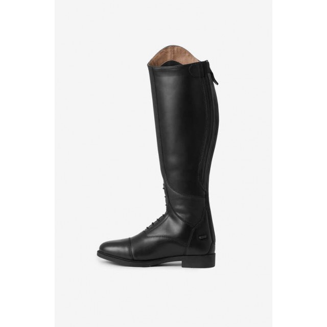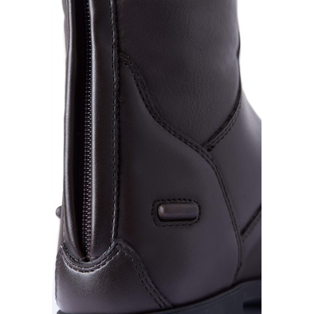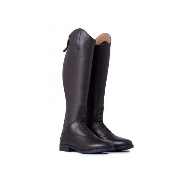 Oficerki wykonane są z miękkiej skóry syntetycznej, wykończone wyściółką z oddychającej siateczki. Elastyczne sznurowadła z przodu nadają im klasyczny wygląd, a zapięcie na zamek z tyłu ułatwia zakładanie i zdejmowanie. Zatrzask zapewnia idealne dopasowanie i nie odpinanie się oficerek podczas jazdy. Wygodna podeszwa sprawia, że można w nich chodzić przez cały dzień, sprawdzą się nie tylko podczas jazdy, ale też podczas prac w stajni i wypraw na pastwisko.