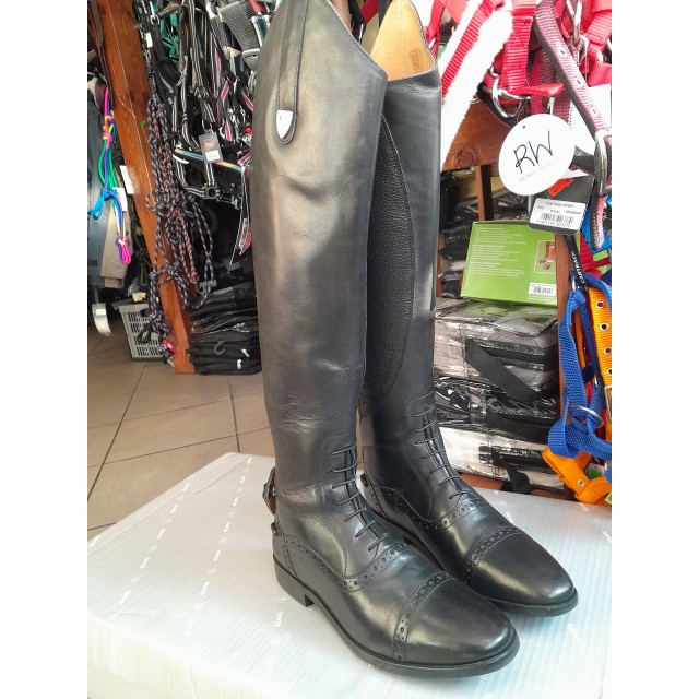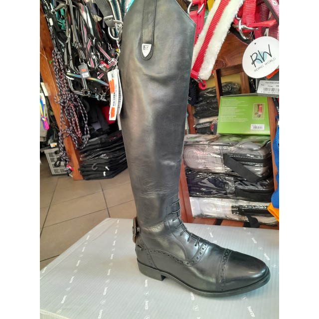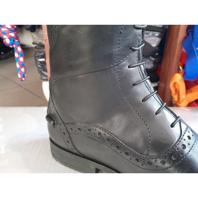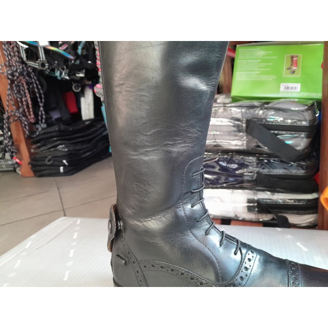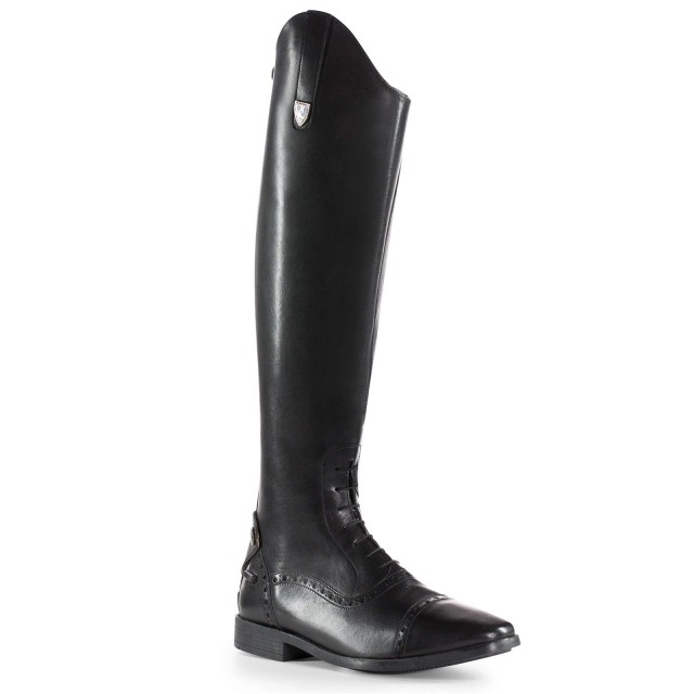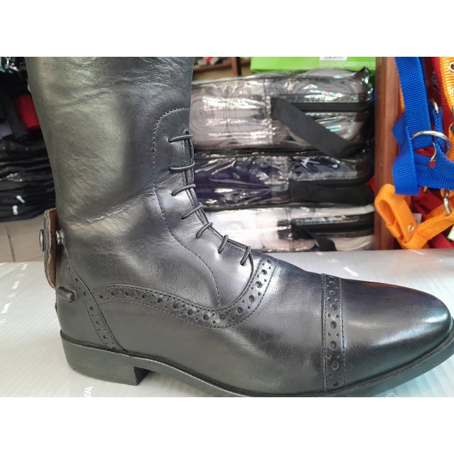 Gumowe podeszwy o antypoślizgowym charakterze zapewniają pewność i stabilność podczas jazdy w strzemionach. Wnętrze oficerki zostało wyposażone w miękką, skórzaną wkładkę, co dodatkowo wpływa na komfort jeźdźca. Wyrafinowane detale, takie jak piękne dziurkowania i kryształkowe logo Horze na górze, nadają oficerkom elegancki charakter.