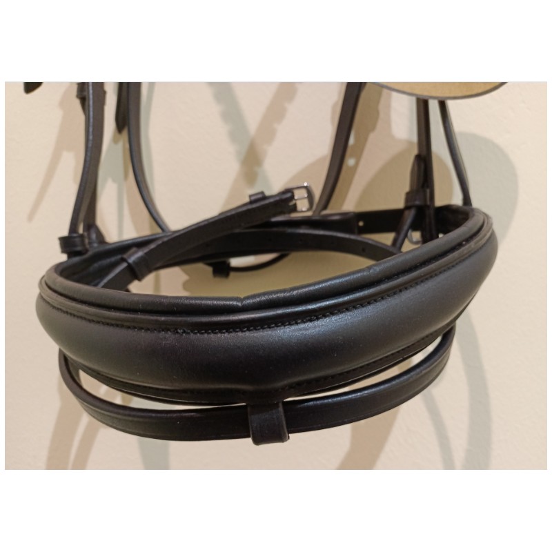 Kolor: czarny, nachrapnik cały czarny bez połysku (mimo, że na zdjęciu widnieje czarno-biały nachrapnik z połyskiem)