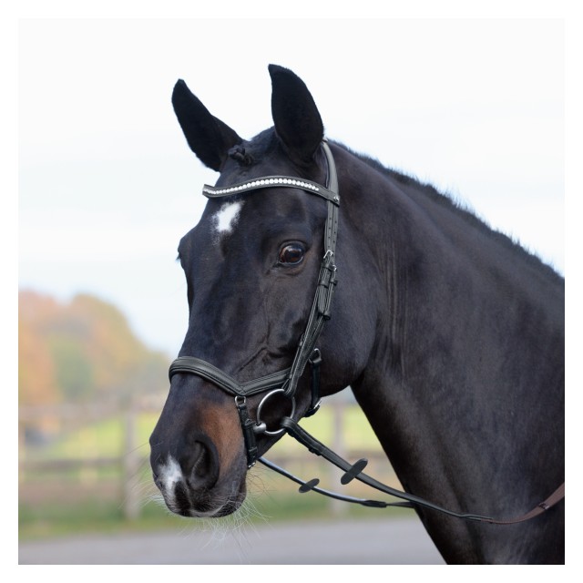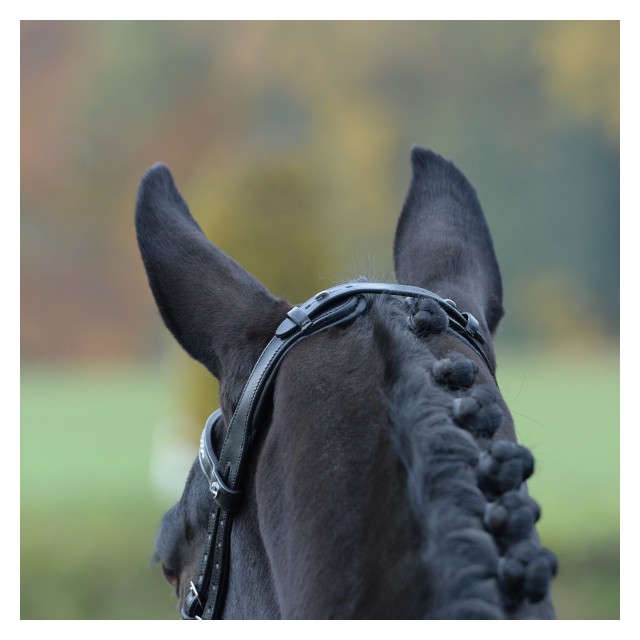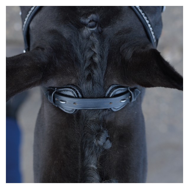 Dzielona konstrukcja paska potylicznego umożliwia optymalne dopasowanie, zmniejszenie nacisku i zniwelowanie dyskomfortu w okolicach uszu konia. Miękko wyściełany, anatomiczny nachrapnik omija sploty nerwowe i wrażliwe