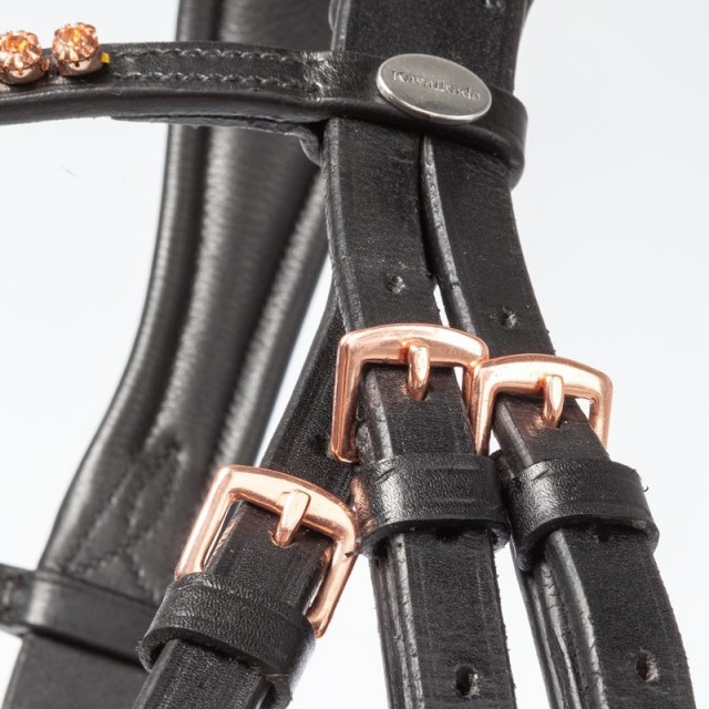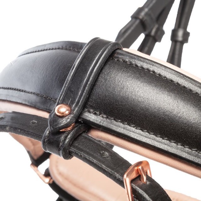 Niezwykle eleganckie i pięknie wyglądające ogłowie, wykonane z wysokiej jakości, miękkiej włoskiej skóry. Ogłowie jest wyposażone w miękkie podszycie w części potylicznej, nosowej i na naczółku. Nachrapnik szwedzki z odpinanym skośnikiem. Szeroki pas potyliczny, dostosowany do kształtu anatomicznego, gwarantuje równomierne rozłożenie ciśnienia i umożliwia swobodne ruchy uszom.