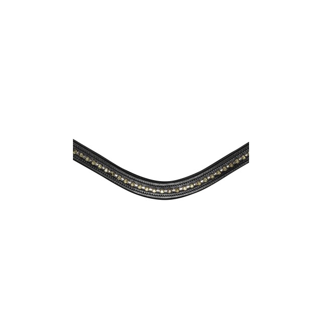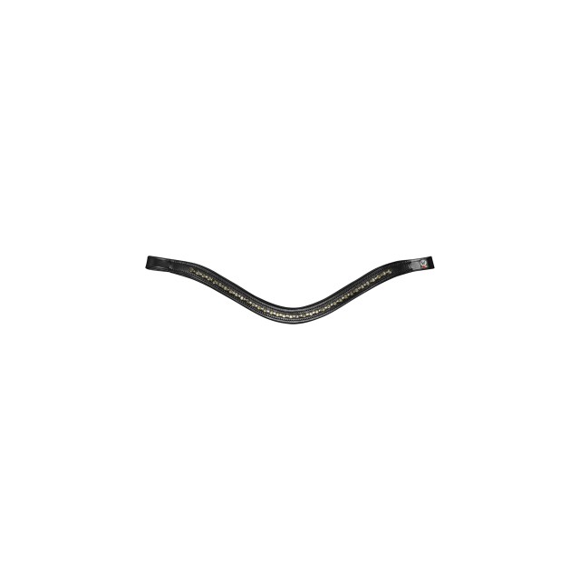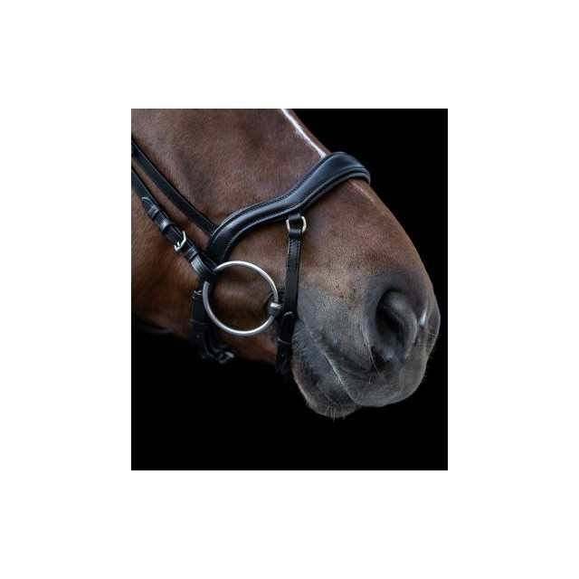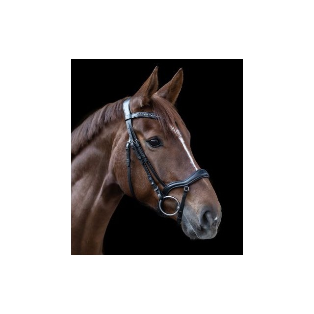 Ogłowie skórzane z materiałów wysokiej jakości. Elegancki zdobiony naczółek o opadającym kształcie. Specjalnie wyprofilowany pasek potyliczny zapewnia większą swobodę w okolicy uszu. Dodatkowo nachrapnik o specjalnym kształcie zapobiegającym uciskaniu na kość nosową.