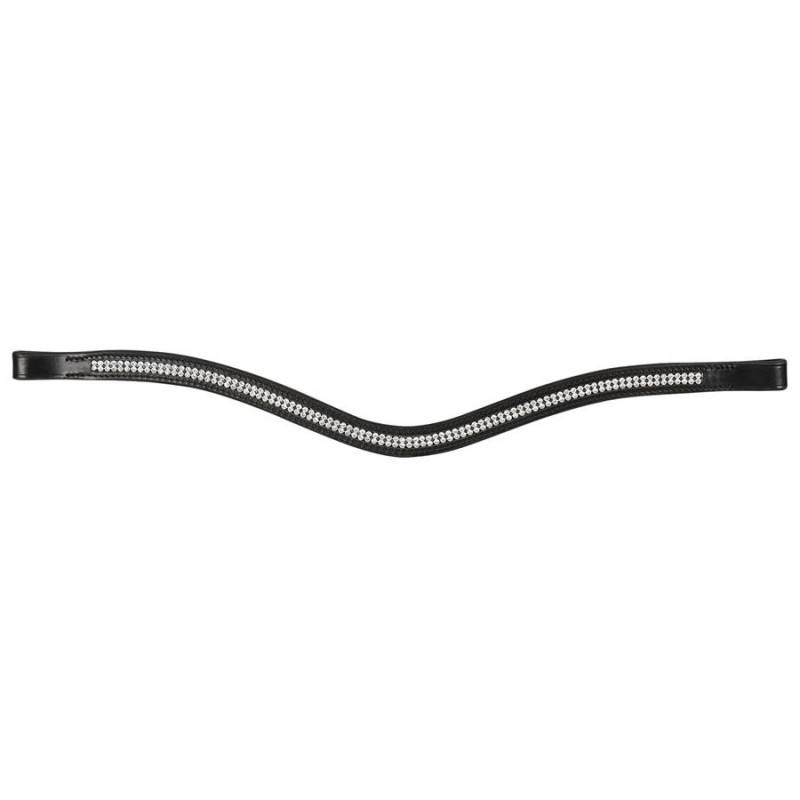 Lekko wygięty naczółek ozdobiony dwoma rzędami srebrnych kryształków. Wykonany ze skóry, niepodszyty.