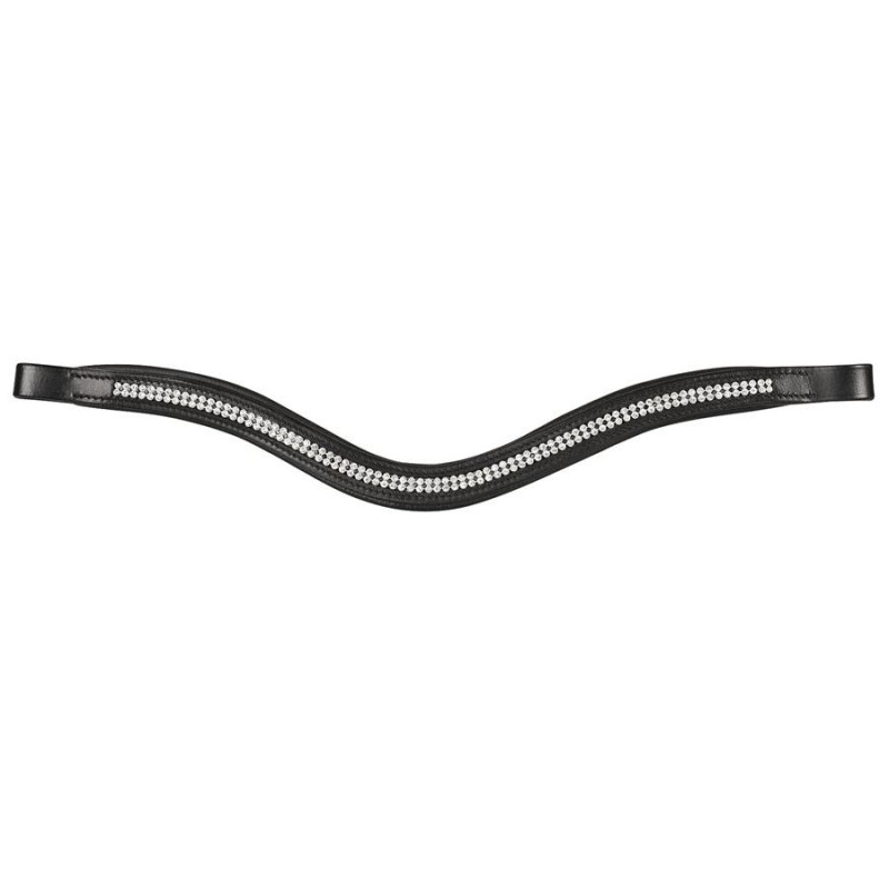 Lekko wygięty naczółek ozdobiony dwoma rzędami srebrnych kryształków. Wykonany ze skóry, miękko podszyty.