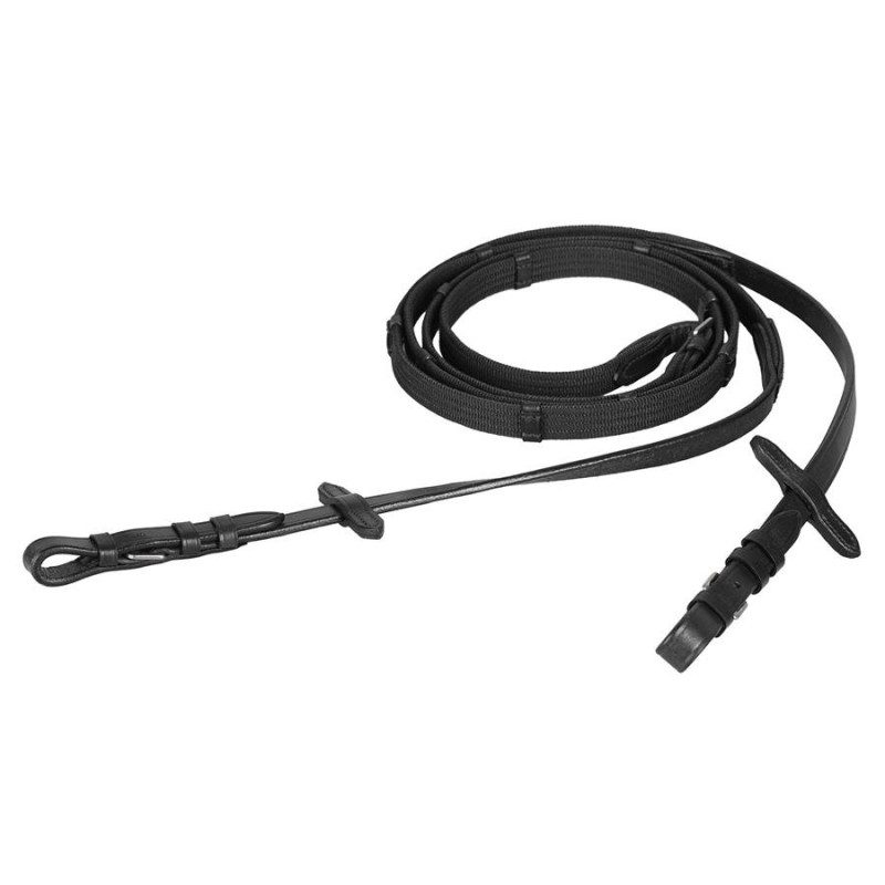 Klasyczne wodze parciane, posiadające skórzane stopery oraz motylki do wytoku. Klasyczne zapięcie na sprzączkę. Elementy metalowe wykonane ze stali nierdzewnej.