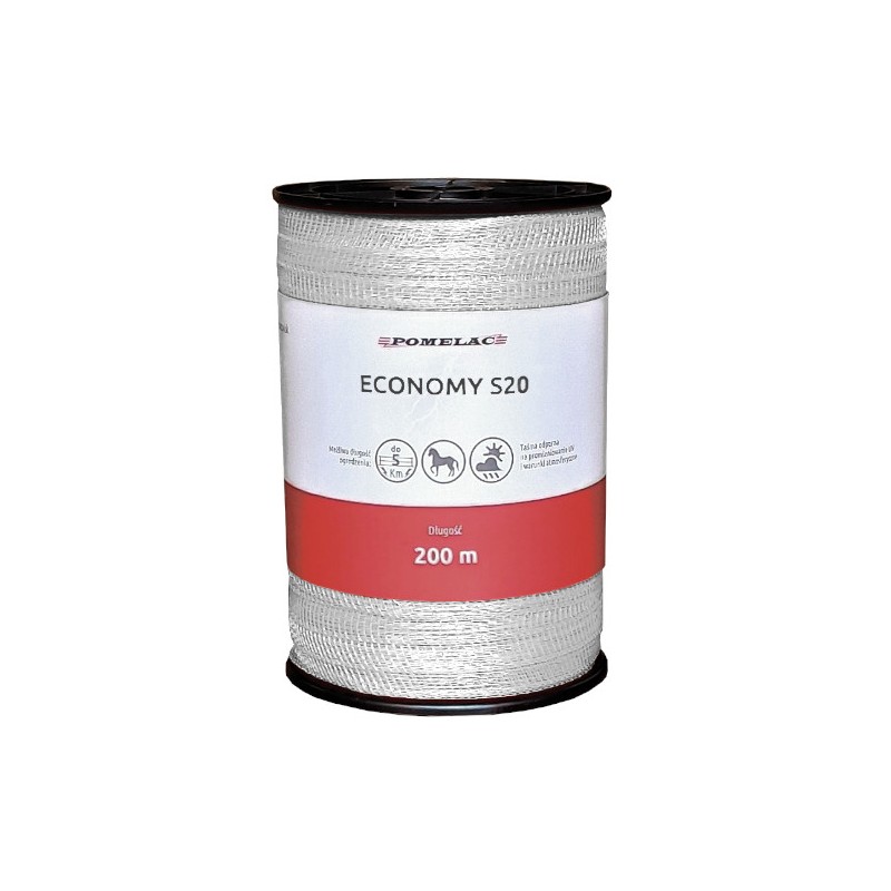 Taśma do ogrodzeń elektrycznych wykonana z wytrzymałego materiału. W taśmę wplecione są 4 druciki. Taśma idealnie nadaje się na ogrodzenia pastwisk dla koni, jest dobrze widoczna, nawet z większych odległości.