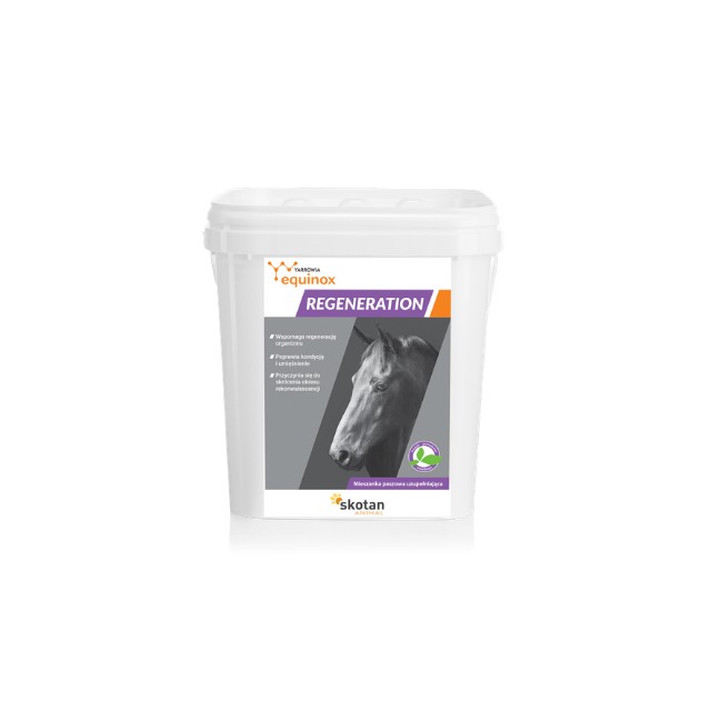 Regeneracja po przebytych chorobach oraz wznowienie treningów to niełatwe okresy dla konia. Powrót do pełnych obciążeń po przerwie to duże obciążenia dla mięśni oraz stawów. Zbyt szybkie wprowadzenie konia do intensywnego treningu może skutkować ich przeciążeniem. Wydłużenie czasu regeneracji między treningami jest szczególnie ważne u koni po przebytych chorobach, w słabszej kondycji oraz koni starszych, aby zapobiegać po wysiłkowemu niszczeniu końskich mięśni. Equinox Regeneration jest dedykowany dla koni w słabej kondycji, po przebytych chorobach i w okresie rekonwalescencji. Mieszanka paszowa uzupełniająca Equinox Regeneration, dzięki wysokiej przyswajalności składników pokarmowych, wyrównuje niedobory mineralne oraz wzbogaca organizm w białko o wysokiej wartości biologicznej, które spełnia istotną rolę w odbudowie i regeneracji tkanki mięśniowej. Dodatek kompleksu witamin, magnezu i fitobiotyków wspomaga odporność organizmu, pobudza regenerację tkanek oraz działa bakteriobójczo.