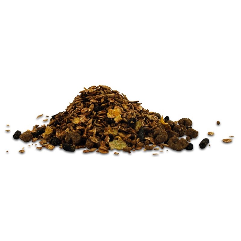 jęczmień, pszenica, owies, słonecznik ekstrahowany, melasa trzcinowa, kukurydza, groch, soja pełnotłusta, trawa, otręby ryżowe, węglan wapnia, mączka z obłuszczonej soi (genetycznie modyfikowana), chlorek sodu, olej rzepakowy, tlenek magnezu, fosforan jednowapniowy, fruktoza oligosacharydy, wodorowęglan sodu, oligosacharydy
