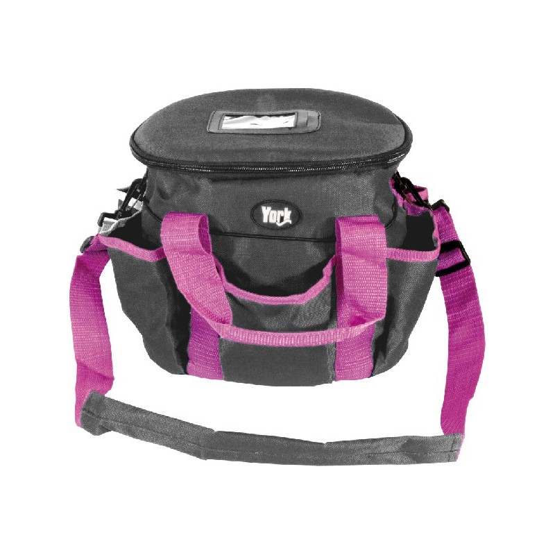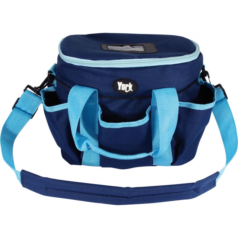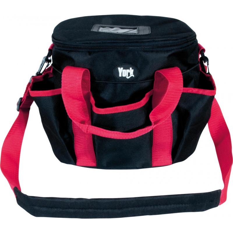 Praktyczna, dwukolorowa torba wykonana z poliestru. Oprócz głównej komory, która jest zamykana, posiada dodatkowo sześć kieszonek na niezbędne rzeczy do czyszczenia konia. Od spodu zaopatrzona w "nóżki", które zapobiegają brudzeniu się. Posiada pasek na ramię z możliwością regulacji długości.