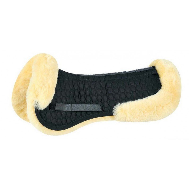 Najwyższej jakości podkładka anatomiczna z naturalnego owczego futra. Zapewnia pełny komfort i ochronę grzbietu konia. Zewnętrzny materiał (od góry) stanowi bawełna, od spodu podkładka jest w całości podszyta naturalnym futrem owczym (z przerwą na kręgosłup). Dodatkowe ranty z futra nadają szyku i elegancji.