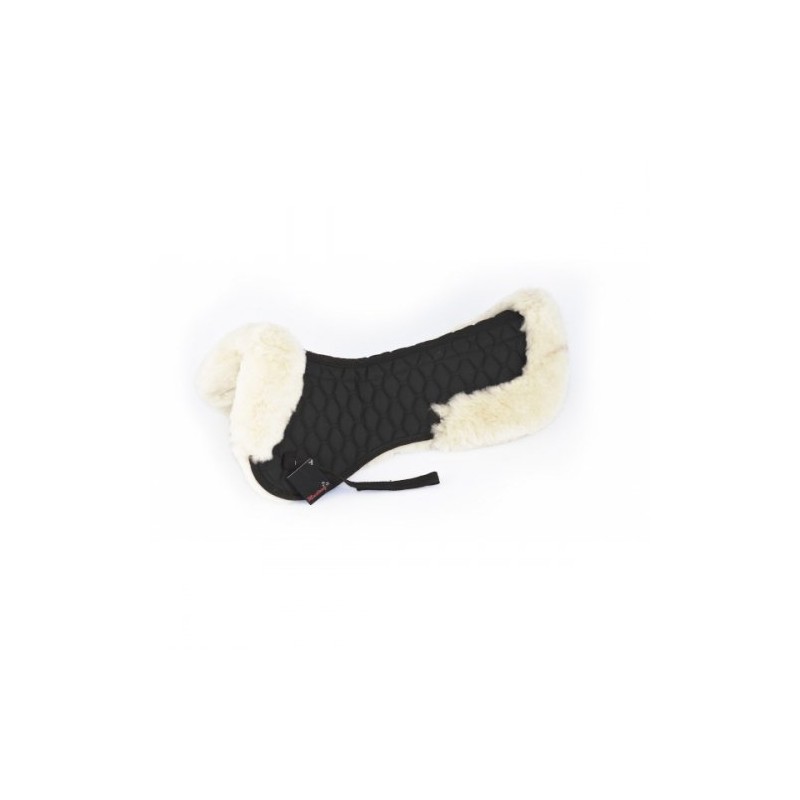 Podkładka pod siodło podszyta naturalnym owczym futrem. Zapewnia pełny komfort i ochronę grzbietu konia. Zewnętrzny materiał (od góry) stanowi bawełna, od spodu podkładka w całości podszyta jest naturalnym futrem. Dodatkowe brzegi z futra nadają szyku i elegancji. Wykonana w Polsce z wysokiej jakości materiałów.