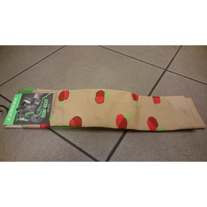 "Podkoniówki" to wysokiej jakości skarpety jeździeckie. Posiadają wygładzone szwy w okolicach palców, dając wysoki komfort użytkowania. Kolejne atuty "Podkoniówek" to: wzmocnienia w okolicach palców i pięty, podwójny ściągacz utrzymujący skarpetę w odpowiednim miejscu pod kolanem, specjalna siateczka- odprowadzająca wilgoć i dająca optymalną wentylację.